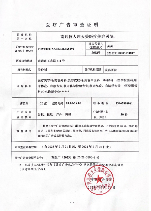 南通儷人連天美醫(yī)療美容醫(yī)院是與著名的醫(yī)療美容集團合作建立的醫(yī)院,醫(yī)院提供高品質(zhì)的醫(yī)療美容服務。2008年,南通儷人連天美醫(yī)療美容醫(yī)院落戶南通,成為由南通衛(wèi)生局審批的專業(yè)醫(yī)療美容醫(yī)院。南通儷人連天美醫(yī)療美容醫(yī)院,特別設(shè)有專業(yè)的整形美容科、皮膚美容科和微創(chuàng)美容科三大科室,致力于為廣大求美者提供全方位的醫(yī)療美容服務。南通儷人連天美醫(yī)療美容醫(yī)院為求美者建立個人終生美麗檔案,一對一進行細致服務。 11年來,南通儷人連天美醫(yī)療美容醫(yī)院,不斷引進先進設(shè)備,不斷完善醫(yī)美技術(shù),一批優(yōu)秀、專業(yè)而穩(wěn)定的醫(yī)生團隊,為無數(shù)求美者鑄就美麗夢想。